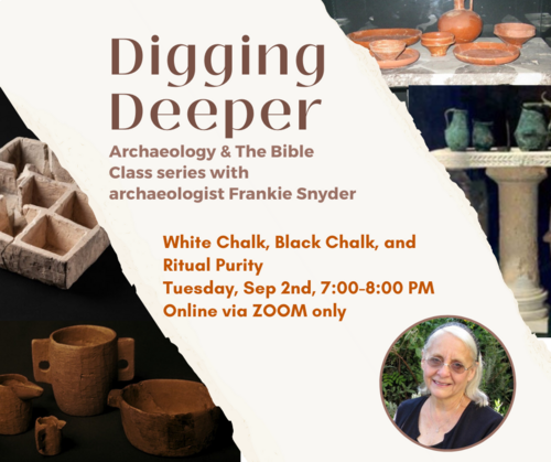 In the Late Second Temple Period, we begin to see more and more vessels made out of stone, especially white chalk and later black chalk – bowls, cups, plates, pots, basins, and even tables. We will be looking at where the chalk came from, how the vessels were made, and why these were important to the Jewish community, especially around Jerusalem.