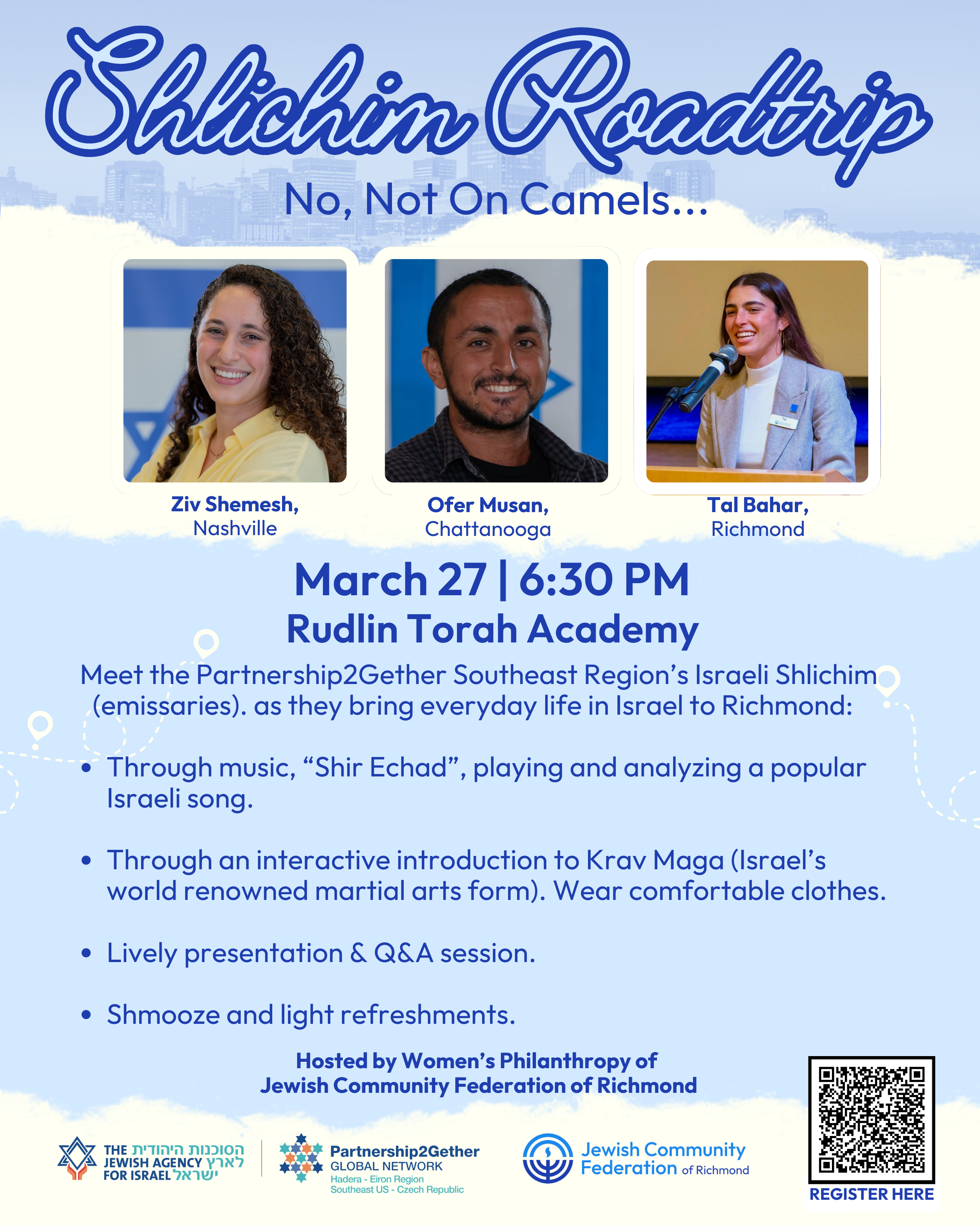 Meet the Partnership2Gether Southeast Region’s shlichim as they finish their southern roadtrip together and bring every day life in Israel to Richmond!