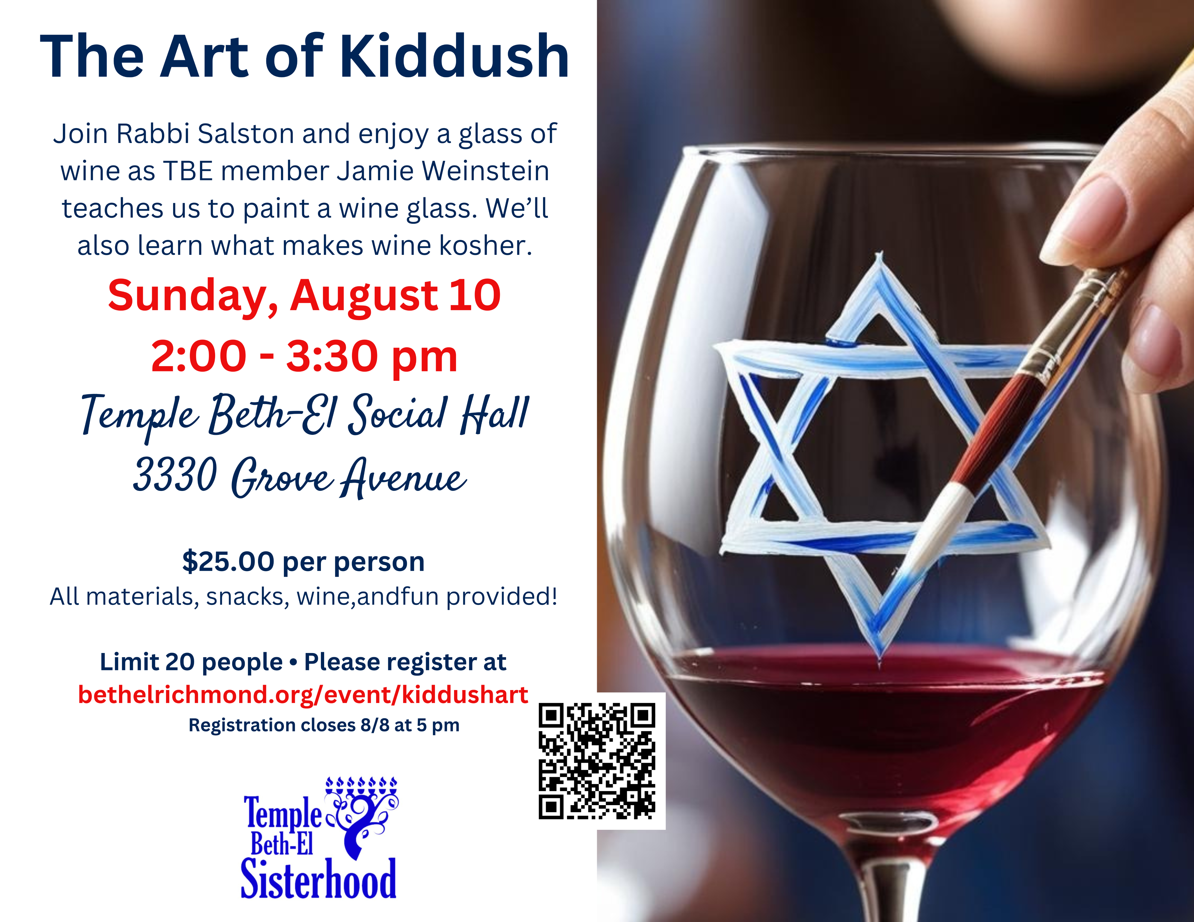 Sign up now: bethelrichmond.org/event/kiddushart