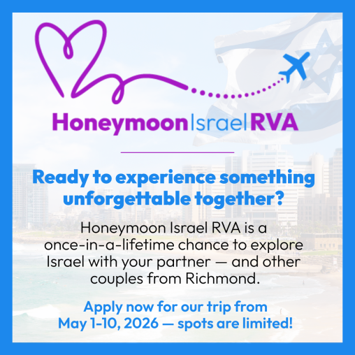 Honeymoon Israel RVA offers young couples (ages 25-45) from the Richmond area—where at least one partner identifies as Jewish—a unique opportunity to explore Jewish life, identity, and community through an immersive journey to Israel with the Jewish Community Federation of Richmond. This highly subsidized group trip brings together diverse couples early in their committed relationships, fostering deep connections with Jewish culture, traditions, and values.